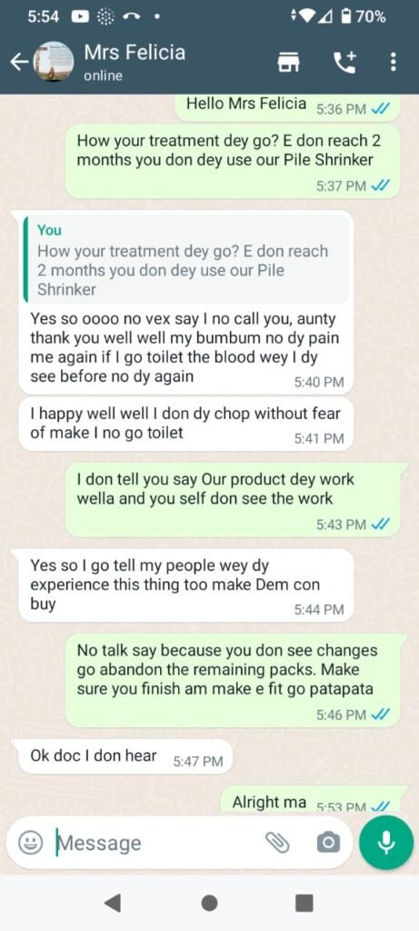 This is a Testimonial From Mrs Felicia after using Pile Shrinker for 90 Days