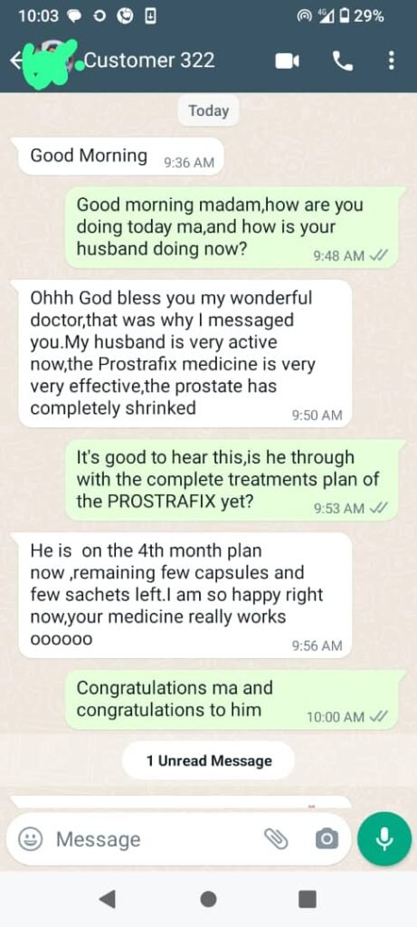 He took my sample and I was asked to come back for my result after some days i got my result and my PSA was around 15 as against the normal… i became so worried and i explained this to my wife and my mom, in the process of talking, my mom interrupted me and told me how surgery was done on my dad and he has to live on diapers before passing on and then she narrated how my uncle also passed on after battling with prostate enlargement which lead to blockage and other complications…. he was placed on catether but couldnt live on it for long